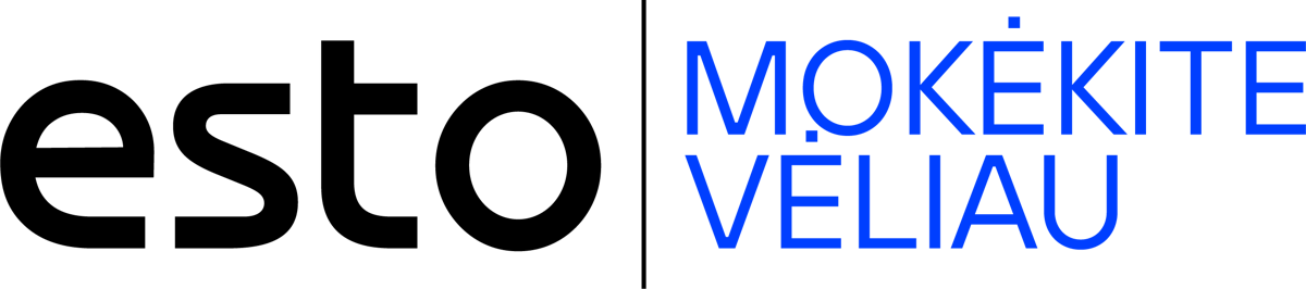 2.5 ESTO Mokėk vėliau – naujas būdas mokėti už pirkinius. Patogiai perkelkite pirkinio sumą ir už jį sumokėkite per 30dienų. Įsigykite būtent tai, ko reikia, be palūkanų, be papildomų mokesčių ir be įnašo.ESTO Mokėk vėliau pasinaudoti galite internetinėse ir fizinėse parduotuvėse. Visas ESTO partnerių parduotuvesrasite ESTO Market: https://esto.eu/lt/esto-market?lang=lt.